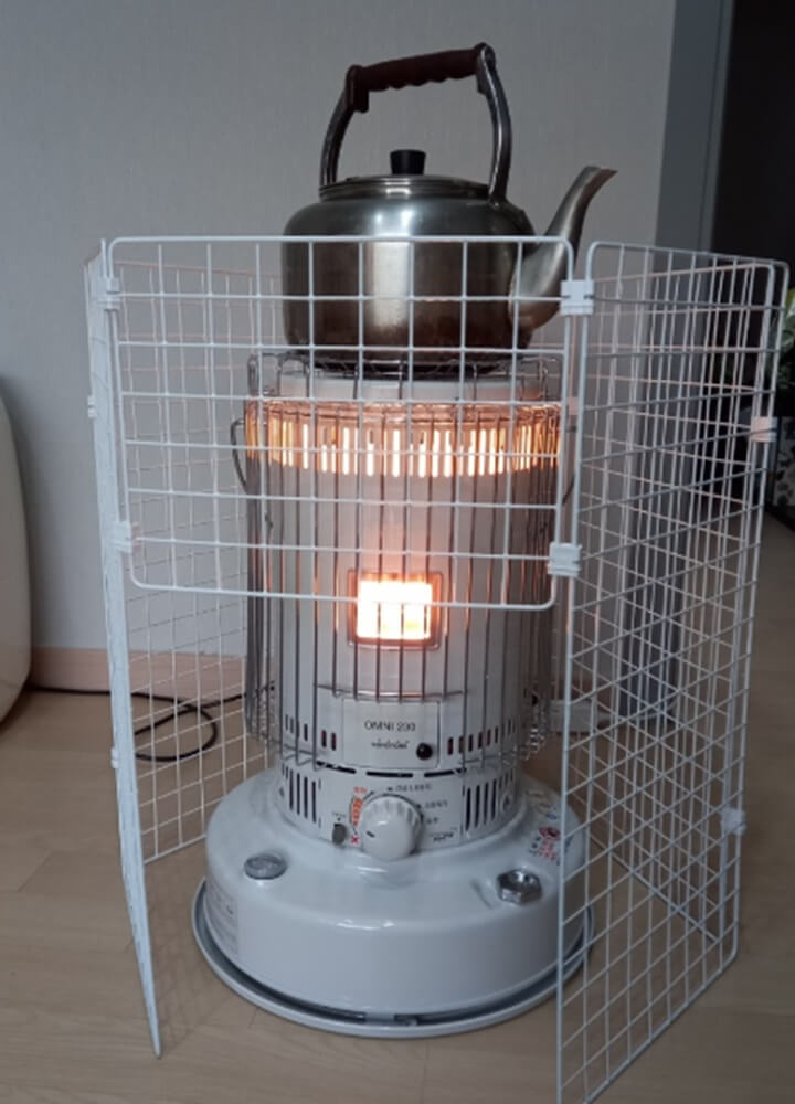 2) 환기장소에서 난로가 완전히 꺼질 때까지 켜두기(난로탱크, 심지기름 완전제거, 처음 구매 시와 동일상태 유지 후 보관)