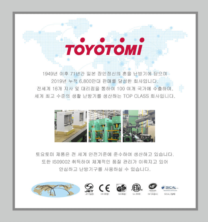 1) 도요토미옴니230은 동급 성능의 타사 제품과 달리 제품 내부 일산화탄소감지 미장착으로 별도구매 해야 합니다.