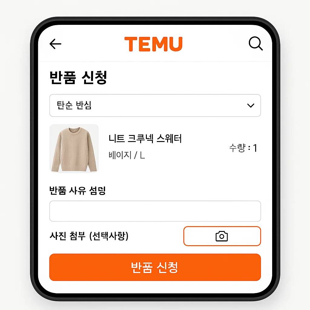 3. 반품 사유 입력 후 사진 첨부 (필수 아님)
