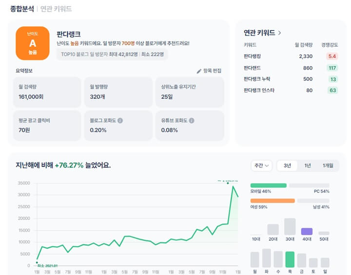 마케팅 부업 채널의 다양한 분야에서 활약하는 빅데이터 플랫폼, 판다랭크는 유튜브, 스마트스토어, 블로그 이렇게 3가지 분야에 대한 데이터 분석을 지원합니다. 서두에 언급했듯이 오늘은 블로그 운영을 계획하신 분들을 위해 자세한 설명을 드리겠습니다.